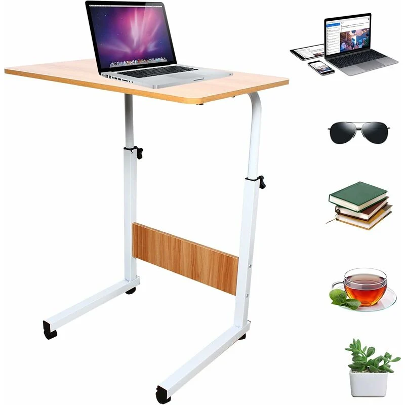 Work, eat, or relax anywhere with this high-quality multifunctional table. Built with a sturdy metal frame, a smooth wood-finish top, and easy-glide wheels for ultimate mobility.